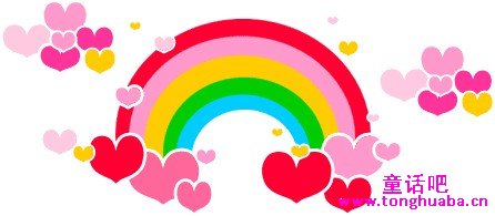 他们摸摸脑袋抬起头。哇,天上有座彩虹桥!